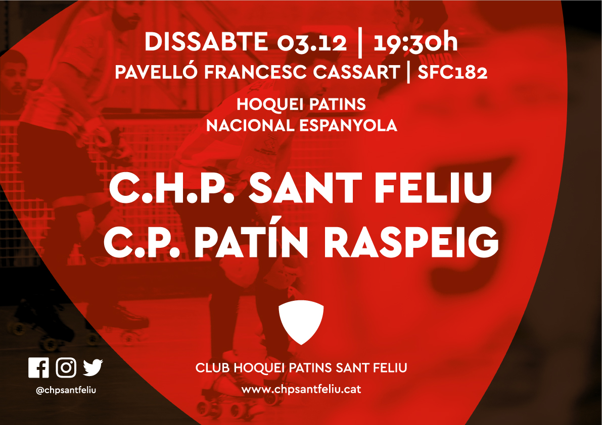 Aquest proper dissabte 3 de desembre de 2016 a les 19:30h important partit del Nacional Espanyola amb amb el Patín Raspeig, esperem ser-hi tots i animar i gaudir de un gran partit d’hoquei.