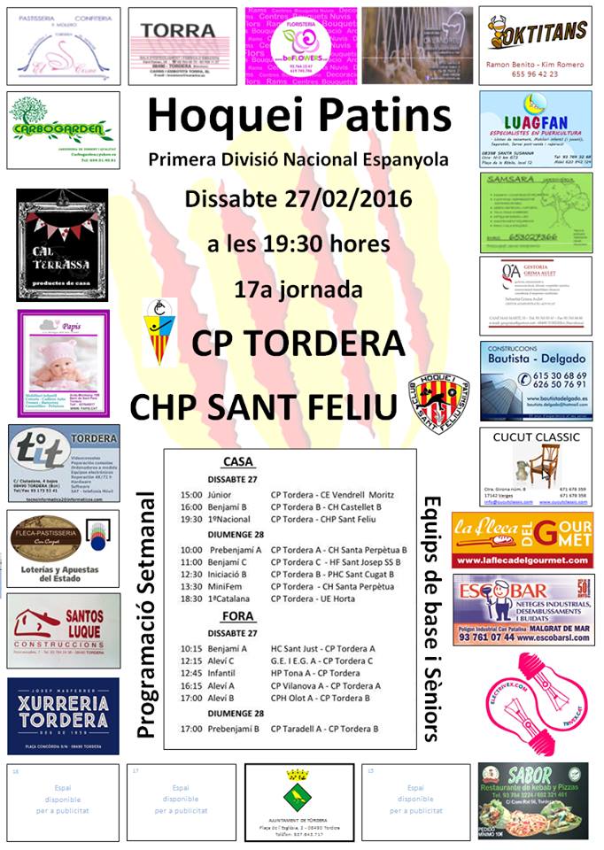 Home Tordera - Sant Feliu (1ª Espanyola, 17 ª Jornada Lliga 2015-2015, dissabte 27/02/2016) 20160227_Cartell_Tordera_St_Feliu