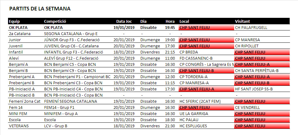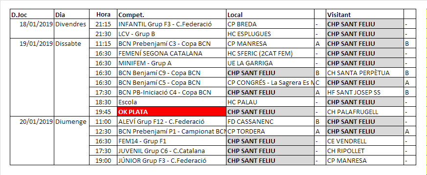 Dissabte 19.45h OK Plata Sant Feliu amb CH Palafrugell
