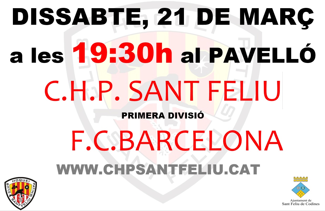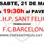 El primer equip del C.H. Sant Feliu rebrà al F.C. Barcelona al Pavelló Francesc Cassart i Roca.