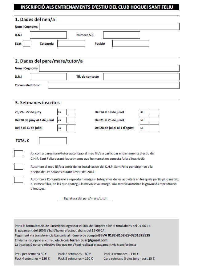Durant la reunió informativa se us facilitarà full per fer l ‘inscripció definitiva.