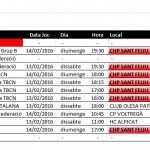 - 16:00h PreBenjamins Iniciació “B” grup C2 Copa TBCN partit amb Santa Perpètua.