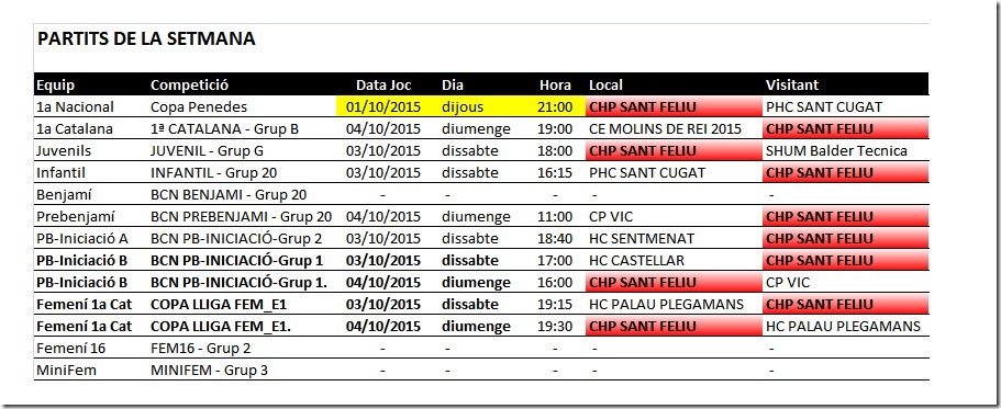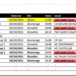 Horaris partits aquesta setmana, dijous 1, dissabte 3 i diumenge 4 d’octubre