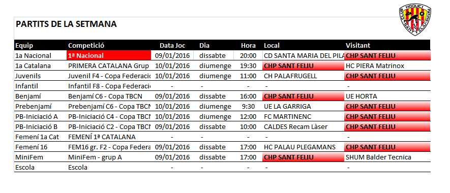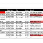 Us comuniquem els horaris dels partits del proper fi de setmana, dissabte 9 i diumenge 10 de gener de 2016. Aquest cap de setmana tornen totes les competicions després de l’aturada per les vacances de Nadal.