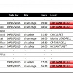 Horaris partits dissabte 9 i diumenge 10 de maig