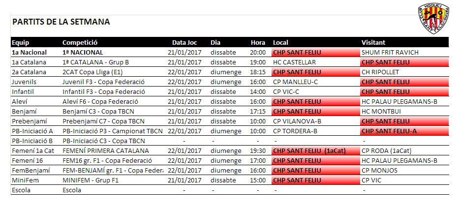 Home Calendaris i Horaris/Partits d'aquest proper cap de setmana, dissabte 21 i diumenge 22 20170117_PartitsSetmana_01