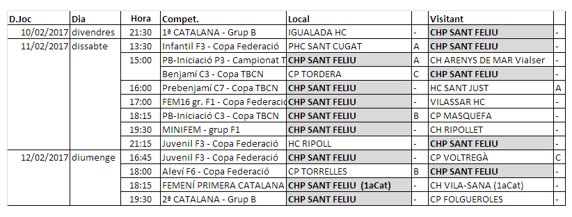 Home Calendaris i Horaris/Partits d’aquest proper cap de setmana, divendres 10, dissabte 11 i diumenge 12 20170207_PartitsSetmana_02