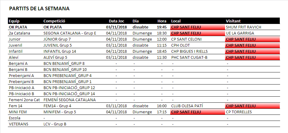 Partits d’aquest proper cap de setmana primer de novembre