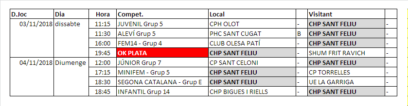 Us informem dels propers partits d’hoquei patins d’aquesta setmana dissabte 3 i diumenge 4 de novembre de 2018.