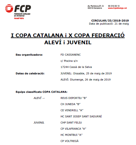 També tindrem el nostre equip Juvenil que disputarà la Final a Quatre de la Copa Catalana, que es disputarà a la pista del Foment Deportiu Cassanenc el dissabte a la tarda. S’haurà d’enfrontar amb el Vilafranca a les 11.00h per poder accedir a una plaça de la final que serà el diumenge a les 18.30h. Molts Ànims i Força Juvenils!