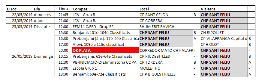 Us informem dels propers partits d’hoquei patins del equips del nostre Club Hoquei Patins Sant Feliu de Codines d’aquest últim cap de setmana de maig.