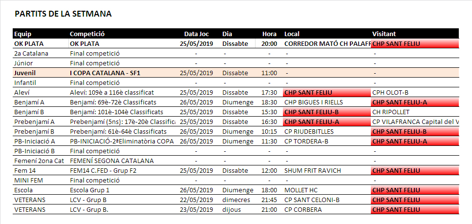 També tindrem el nostre equip Juvenil que disputarà la Final a Quatre de la Copa Catalana, que es disputarà a la pista del Foment Deportiu Cassanenc el dissabte a la tarda. S’haurà d’enfrontar amb el Vilafranca a les 11.00h per poder accedir a una plaça de la final que serà el diumenge a les 18.30h. Molts Ànims i Força Juvenils!