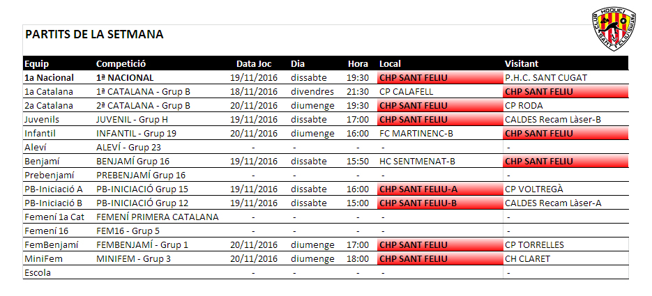 Home Calendaris i Horaris/Partits del proper cap de setmana, 18-19-20 novembre 20161115_partitssetmana_01