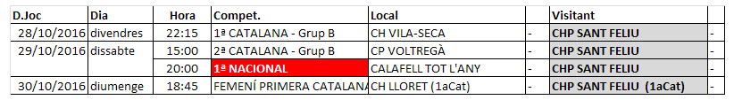Home Calendaris i Horaris/Partits del proper cap de setmana, divendres 28, dissabte 29 i diumenge 30 20161025_partitssetmana_02
