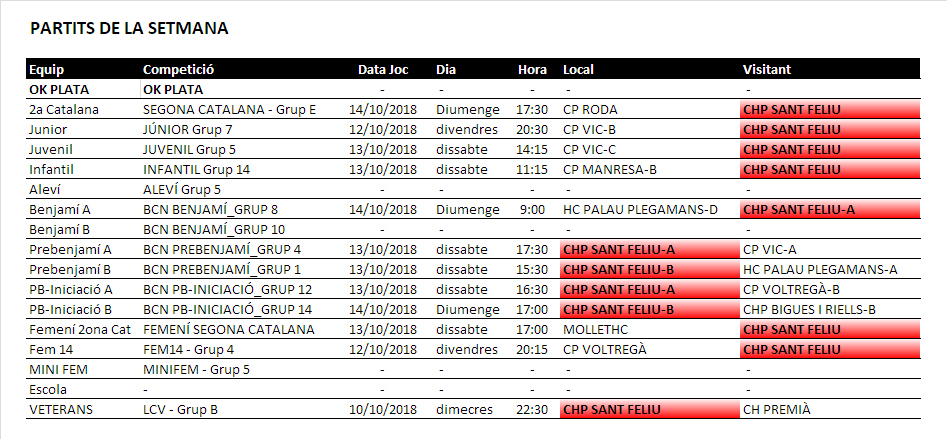Com veieu aquest cap de setmana molts els equips en joc, i avui dimecres 10 els veterans arrancaran la Lliga B amb un partit al Pavelló a les 22.30h amb el CH Premià.