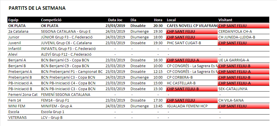 El Segona Catalana aquest diumenge al Pavelló a les 19:30h reb la visita del Cerdanyola. La resta de equips segueixenen les seves lligues i competicions.