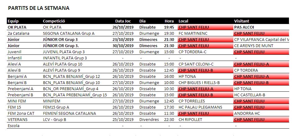 La resta d’equips també tenen els seus partits i es preveuen ben disputats i interessants.