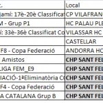 Aquest cap de setmana el Primera Espanyola té jornada de descans per agafar forces davant els dos últims partits que li queden per acabar la temporada, on encara té alguna opció d’ascens. El propers partits el té el dissabte 14 al Pavelló amb el líder, el Barça i el darrer partit i final de temporada el jugarà el dissabte 21 en llar desplaçament a Mieres, Asturies.