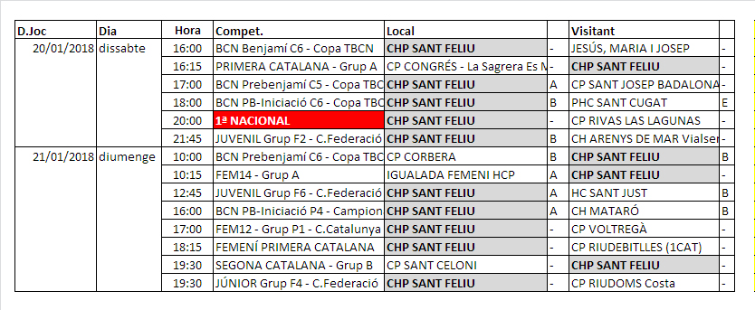 Home Calendaris i Horaris/Partits d’hoquei del proper cap de setmana dissabte 20 i diumenge 21 PartitsSetmana2