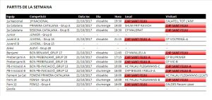 Home Calendaris i Horaris/Partits d’hoquei del proper cap de setmana dissabte 21 i diumenge 22 PartitsSetmana1