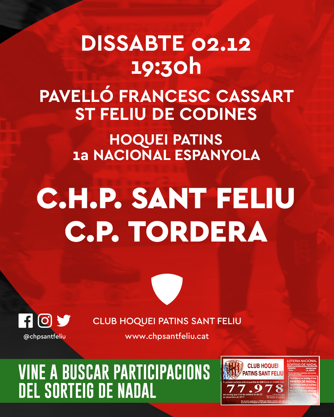 Us informem dels partits d’hoquei patins dels equips del nostre Club d’aquest proper cap de setmana dissabte 1 i diumenge 2 de desembre de 2017, que seran: