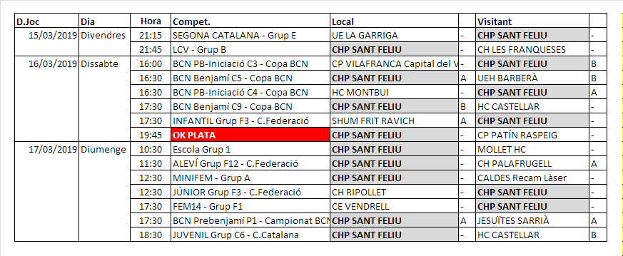 Us informem dels propers partits d’hoquei patins del equips del nostre Club Hoquei Patins Sant Feliu de Codines d’aquest proper cap de setmana.