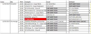 Propers partits dels nostres equips, dissabte 11 i diumenge 12 de març