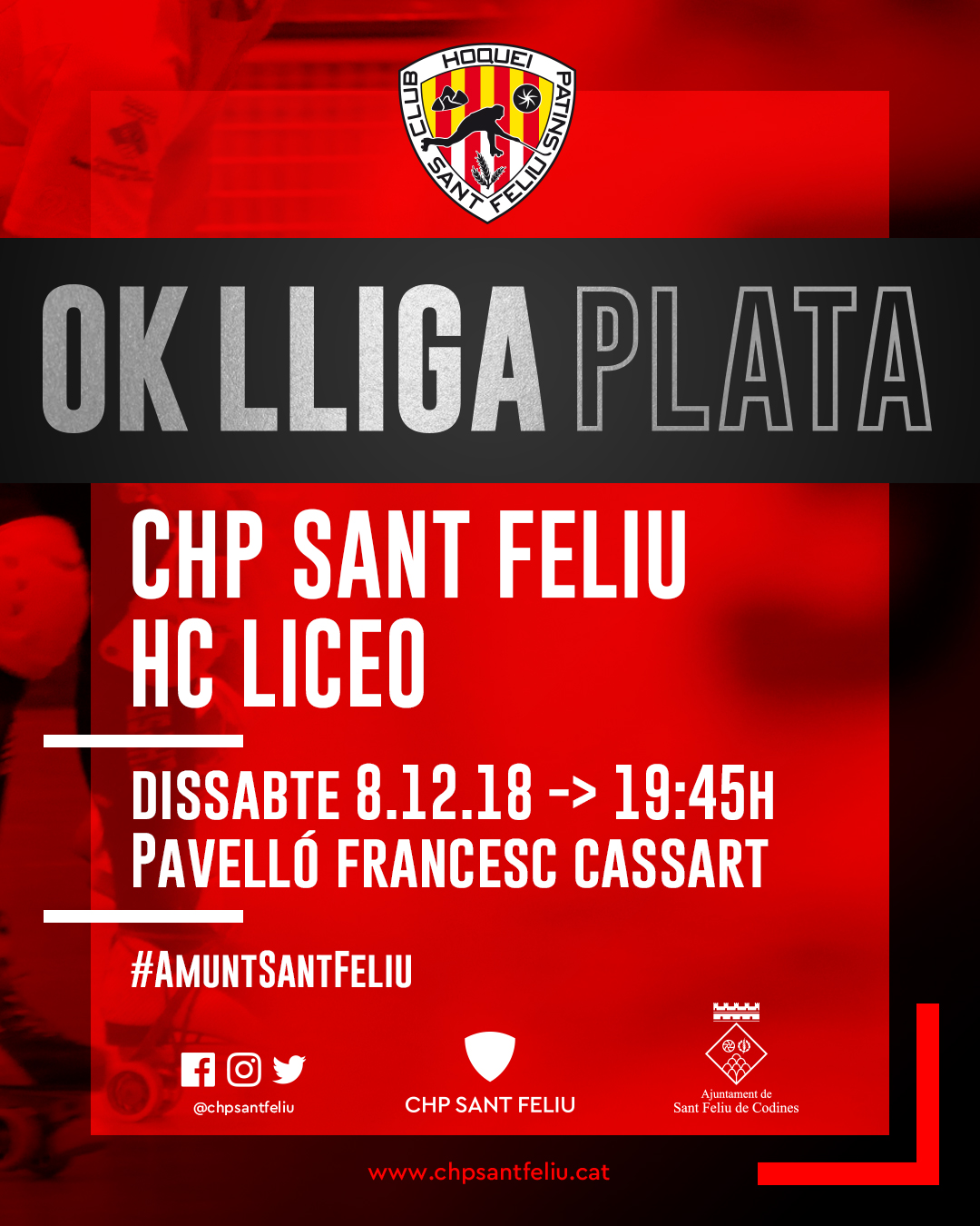 Us destaquem el partit del OK Lliga Plata del dissabte a la tarda, a les 19.45h al nostre Pavelló, que jugarà amb el HC LICEO. Un il·lustre visitant en un Sant Feliu que necessita el suport i ànims de tots! Amunt i Avant Sant Feliu!
