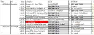 Propers partits d’hoquei, dissabte 25 i diumenge 26 de març de 2017