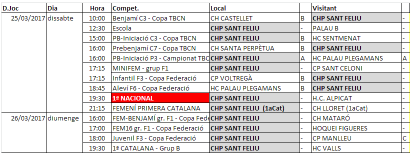 Home Calendaris i Horaris/Propers partits d'hoquei, dissabte 25 i diumenge 26 de març de 2017 20170321_PartitsSetmana_02