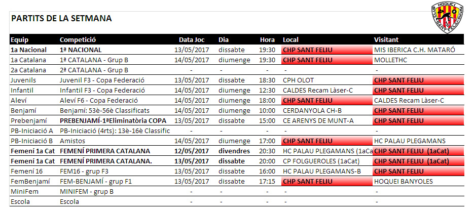 Home Calendaris i Horaris/Propers partits d’hoquei, divendres 12, dissabte 13 i diumenge 14 de maig 20170509_PartitsSetmana_01
