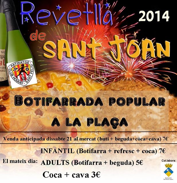Dilluns a les 21.00h es celebrarà la revetlla de Sant Joan a la plaça amb botifarrada popular organitzada per la Secció Patinatge Artístic del Club d’Hoquei Sant Feliu. Després, ball amb el Dj. Xavi Serrats.