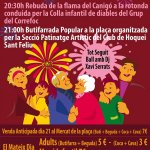 Prèviament, i organitzat per Omnium Cultural i l’Ajuntament, a les 20.30h, es farà una rebuda de la flama del Canigó a la rotonda d’entrada a Sant Feliu, que serà conduïda per la Colla infantil de diables del Grup del Correfoc del Follet i la Fantasma fins a la plaça Josep Umbert Ventura.