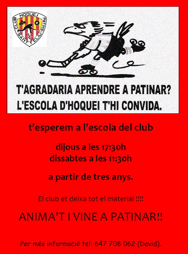 T’agradaria aprendre a patinar? L’Escola d’Hoquei t’hi convida.