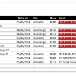 A continuació us posarem junt amb el cartell de la Festa Major de Sant Feliu de Codines els horaris dels partits de la setmana, ordenats per equips i després per horaris.