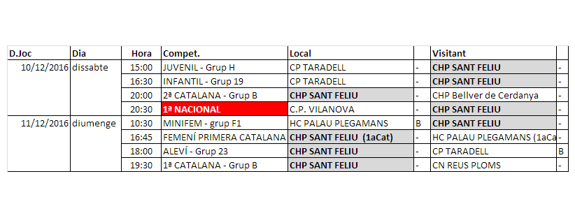 Home Calendaris i Horaris/Us informem dels partits del proper cap de setmana, dissabte 10 i diumenge 11 de desembre 20161206_PartitsSetmana_02